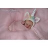 Kit de poupée pour faire une poupée reborn de 18". Le kit est composé de pièces en vinyle non peintes. La photo montre une interprétation possible du modèle.