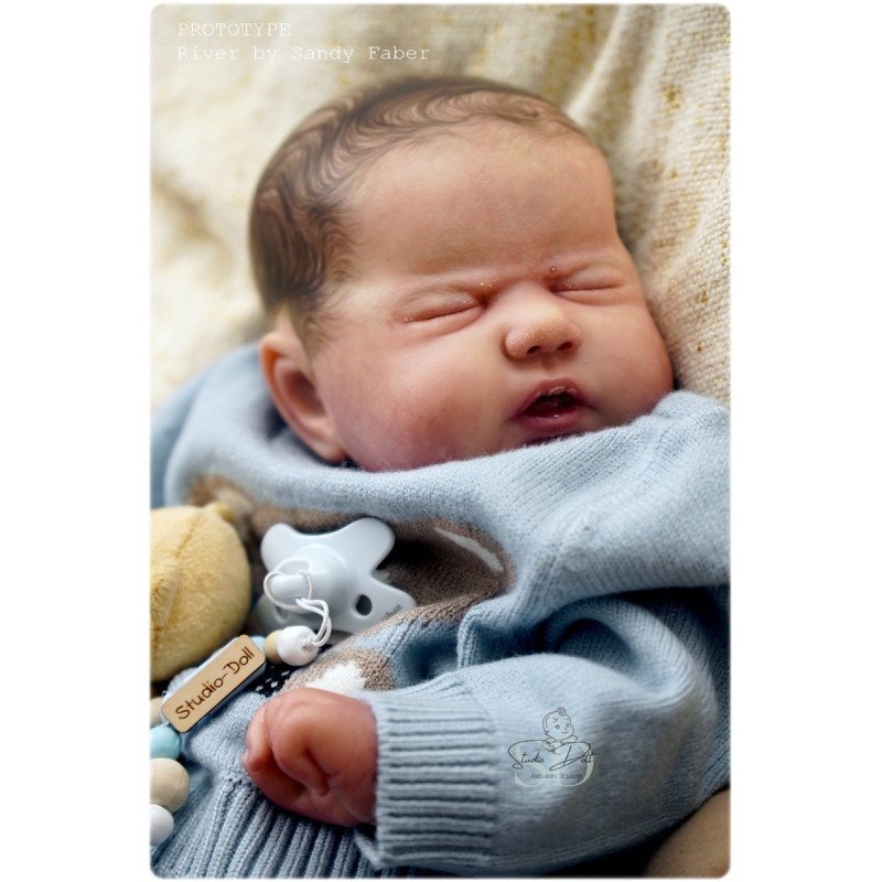 Kit de poupée pour faire une poupée reborn de 20". Le kit est composé de pièces en vinyle non peintes. La photo montre une interprétation possible du modèle.